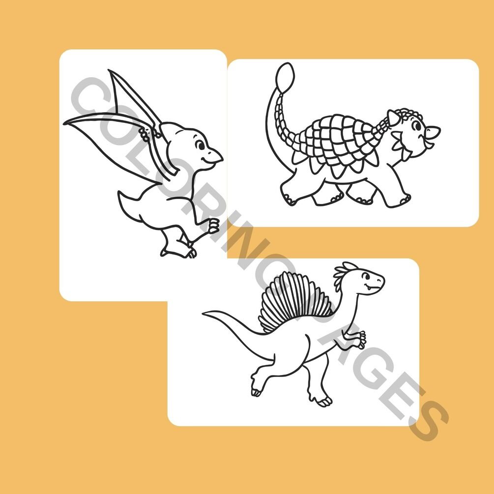 - Multiple dinosaur-themed coloring pages